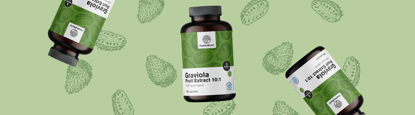Cada cápsula contiene 200 mg de extracto de fruta de la graviola.