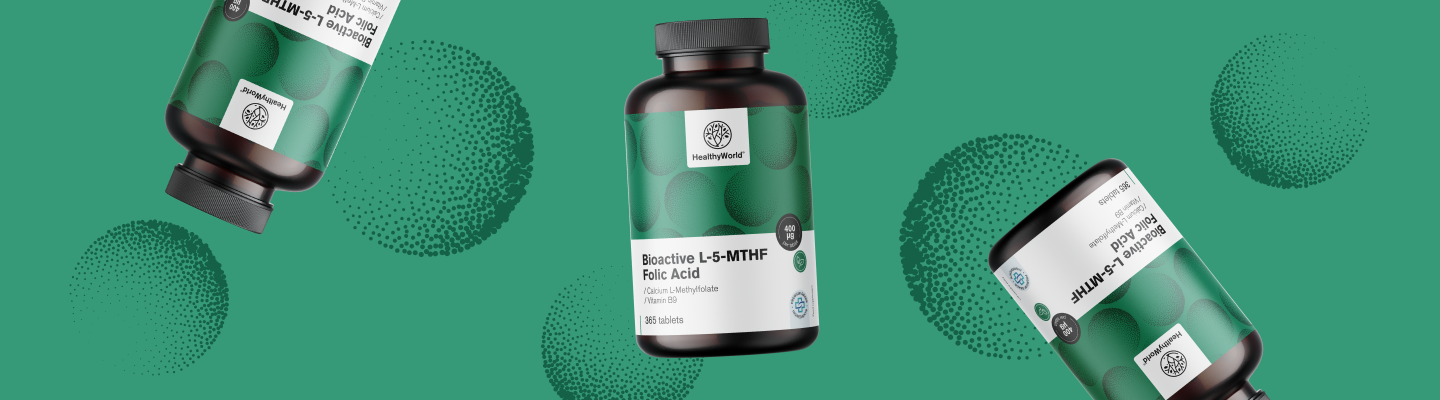 La forma biológicamente activa del ácido fólico – L-metilfolato de calcio, que se utiliza de manera excelente en el cuerpo.